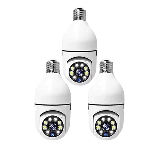 E27 Wireless Indoor Motion Detection HD 1080p Live View in App V380 Pro Dome Shape CCTV Camera Support Upto128GB SD Card (not Included) (WiFi Bulb Camera) Size-18*8*8 Weight-400 g
